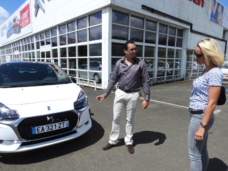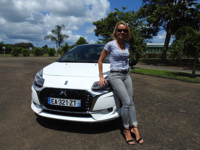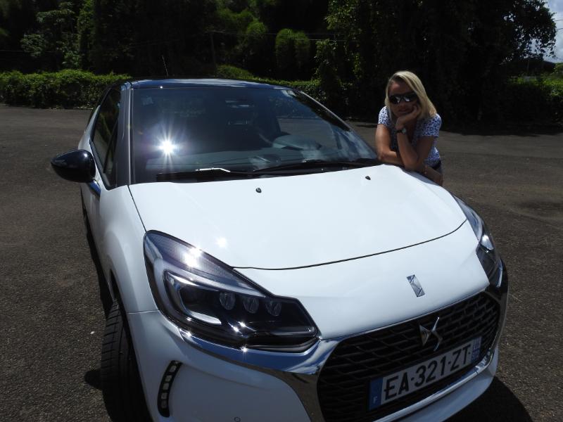 Vanessa Nesty, Reine du soin très luxueux en Martinique, nous à émerveillé par son expertise et sa passion des autres... Mais bien sûr!!! Dans le cadre de notre rubrique «L'avis des femmes» et dans la ligne et la stratégie de DS, la marque est bien fixée sur notre marché Premium, il me paressait évident de proposer à Vanessa, cette jeune chef d'entreprise à la tête de Dessange Galléria, l'essai de la nouvelle et luxueuse DS3 très tendance... Vanessa Nesty, Martiniquaise chic et branchée, totalement issue du marketing, (Notre pilote du jour fut longtemps Responsable communication chez Chanflor...), Vanessa donc, le sourire éclatant nous arrive en concession pour découvrir la belle égérie de DS Martinique... Whao!!! Pardon mais tout y est... Une classe naturelle rehaussée d'un sourire permanent, un dynamisme qui laisse peut de place aux futilités d'une conversation futile (Lol...)... Vanessa respire la joie de vivre et la sagesse des femmes très actives... Belle, enjouée, le regard délicieusement charmant... Je crois que j'ai encore mis dans le mille pour cet essai ou, la DS3, si prête à vous faire succomber par ses lignes fastueuses, va devoir telle une véritable Déesse, ensorceler la Reine du luxueux bien être Dessange en Martinique !!! Voyons... 3 Millions de personnalisations possibles à la commande d'une DS3!!! c'est un argument non négligeable... La DS3 subit son second lifting. Elle avait étrenné les premiers optiques associanttechnologies LED et Xénon. Pour 2016, la DS3 évolue avec un avant inédit présentant une nouvelle calandre et des versions inédites. Depuis le lancement de DS3 en 2010, 390 000 clients ont succombé aux charmes de celle que DS nomme la "parisienne chic et branchée" dans le texte. C'est tout de même un succès pour le groupe français et les nouvelles DS3 et DS3 Cabrio, peuvent compter sur le nouveau moteur 3 cylindres turbo PureTech 130 (4,5 litres pour 100 kilomètres et 230 Nm de couple)pour rester au top. Puisque l'on parle d'être au top, cette nouvelle DS3 tentera également de jouer sur le terrain des GTi avec la nouvelle finition PERFORMANCE avec 208 ch sous le capot... Au bout de ce capot, on trouve doncla nouvelle face avant DS (DS WINGS) avec une calandre verticalisée, de forme hexagonale qui arbore l’emblème DS. Son contour est en chrome et se prolonge en direction des projecteurs et des antibrouillard à LED, via (et c’est la nouveauté inaugurée par Nouvelles DS 3) deux ailes chromées. A l'intérieur,la nouvelle DS3 s'approprie les technologies qui facilitent la vie avecla fonctionnalité Mirror Screen, composée soit d’Apple CarPlay™, soit de MirrorLink® pour les téléphones sous Android. Celle-ci offre aux conducteurs une manière plus intelligente, plus sûre et plus ludique de profiter de l’univers personnalisé de leur smartphone surécran tactile 7’’ en couleurs. Le prix d'appel de cette nouvelle DS3 se situe tout juste sous les 18 000 euros mais il faudra plutôt compter autour des 25 000 euros pour un vrai cœur de gamme enrubanné de quelques personnalisations. Rencontre avec Vanessa Nesty Présidente du salon Dessange Martinique: Grantomobil.fr: Vanessa Grantomobil.fr est charmé de te recevoir chez DS Martinique pour cet essai... Mais avant tout, parle nous de ton cursus professionnel? Vanessa Nesty Présidente du salon Dessange Martinique:"Merci Jean-Marc... Ma vie professionnelle à pris un grand virage il y a 1 an... En effet j'étais responsable marketing d'un groupe alimentaire pendant 13 ans, Chanflor... Et puis, j'ai eu l'envie de voler de mes propres ailes... J'ai pris le goût de l'entrepreneuriat... Très vite une belle opportunité c'est présentée à moi... Le salon Dessange Galléria était a vendre... Je me suis dit pourquoi pas? C'est une très belle enseigne dans les soins, la beauté et le luxe... Un secteur que j'affectionne depuis toujours... J'ai mis peu de temps pour me décider... Je me suis lancée!" L'équipe Dessange Galléria au grand complet à votre service !!!