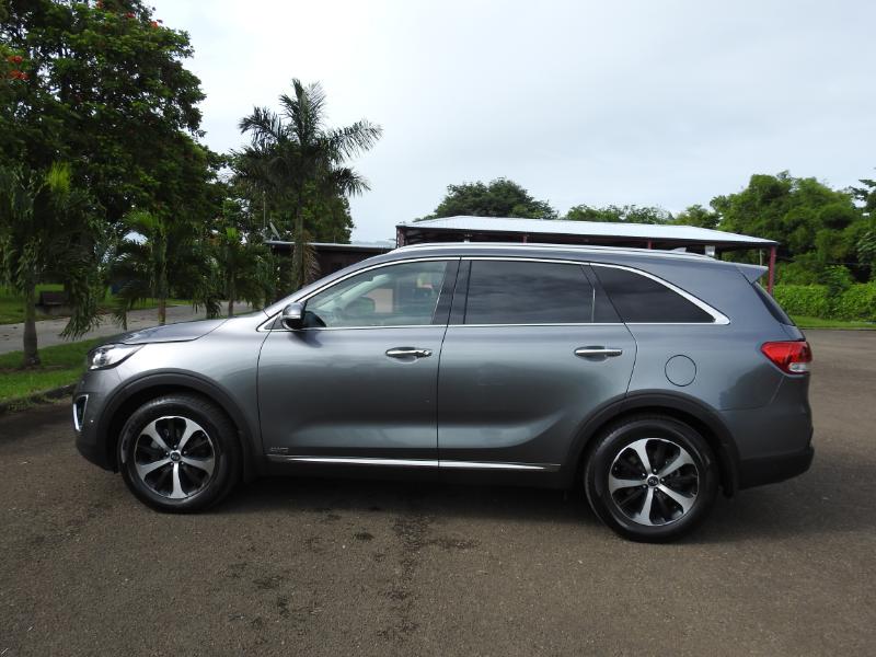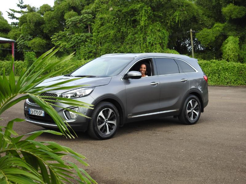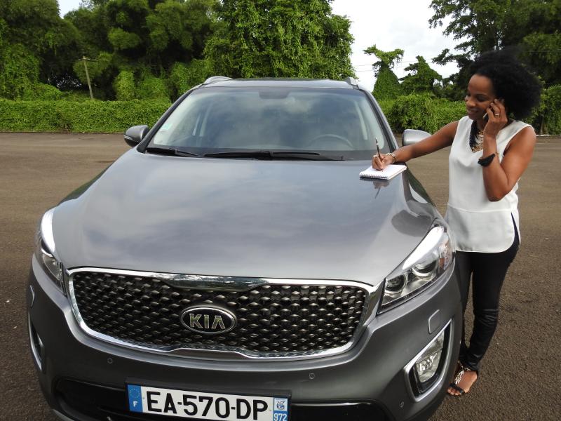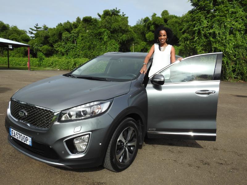 Il est vrai que pour un demandeur d'emploi longue durée il n'est pas simple de remettre le pied à l'étrier en quelques jours… Nous avons donc en amont un travail de préparation, avec son concours, pour une mise en situation de travail pleinement favorable… Tout le monde est gagnant… Le demandeur d'emploi, l'entreprise, et enfinInser 2000 qui réalise ainsi sa mission originelle…» Grantomobil.fr: «Annick vous êtes cadre supérieur, vous avez un mari, deux enfants à élever et des déplacements réguliers sur la Guadeloupe… Comment faites-vous?» Annick Andalon directrice générale adjointe Inser 2000: «(Rire…) Comme toutes les mères je suis très organisée… Les hommes en général sont souvent surpris de voir la qualité de notre organisation, entre vie familiale et professionnelle… Surtout quand nous sommes 'Absente'… (Rire…). Les homme se rendent compte alors du travail à fournir à la maison… Mais vraiment, tout est une question d'organisation… Mon mari, lui-même chef d'entreprise, prend une bonne part de responsabilités dans notre situation… Il arrive à très bien pallier lors de mes déplacements… Puis quelques fois, quand nous sommes tous-deux débordés, il y a toujours une maman d'amour qui intervient… Une grand-mère adorable… Pour ce rendez-vous avecGrantomobil.fr etKIA Sorento j'ai eu beaucoup de mal à me libérer… Il est vrai que quand je quitte mon travail pour une cause 'extra-professionnelle' je me sens très vitre coupable, j'ai eu du mal pour notre essai mais l'on m'a poussé n'est-ce pas Jean-Marc? Mais très honnêtement, je suis vraiment heureuse de participer à cet essai… Bon on parle un peu de la voiture???» Grantomobil.fr: «Ouiiiii… Il est vrai que nous avons a faire à une cadre qui a le sens de l'orientation… Et du temps… An nou alé…» Revenons au Kia Sorento 2,2l CRDi 7 places de 200 cv en transmission 4x4!!! Kia propose de série la transmission intégrale, la configuration 7 places, ainsi qu’une flopée d’équipements. En finition Premium (premier niveau), le Sorento embarque l’alerte de franchissement de ligne blanche, l’allumage automatique des feux, le lecteur des panneaux de limitation de vitesse, un sélecteur de mode de conduite (Eco, Normal ou Sport). La sellerie cuir, les radars de parking avant et arrière ou encore un système de navigation avec écran couleur tactile de 7 pouces. Bref, il a tout ce qu’il faut, et encore plus en finition supérieure Ultimate. Kia démontre également avec cette troisième génération du Sorento les progrès accomplis en matière de qualité de finition. Les ajustements sont précis et les matériaux, de bonne facture. Le SUV saura également séduire ses acquéreurs par son confort, ses aptitudes de baroudeur et la vivacité de sa mécanique. Tout juste constate-t-on une légère tendance à prendre du roulis. Dernier point, Kia annonce un volume de coffre de 142 litres en configuration 5 places et de 605 litres en configuration 7 places notre essai. Grantomobil.fr: «Annick… Vous voilà au volant duSorento CRDi depuis une bonne trentaine de minutes, dites-nous tout??? Rappelons que vous roulez dans uneBMW série 7 qui à 4 ans… Avec le Sorento vous passez en mode SUV!!!» Annick Andalon directrice générale adjointe Inser 2000: «Je suis réellement surprise par la facilité de conduite de ce modèleSorento… La boite automatique m'est familière, impossible pour moi de retourner à une manuelle d'ailleurs… C'est un véhicule aux lignes sympathiques et très plaisant à conduire… Pour la partie 'rocade' son silence me paraît exemplaire… A voir sur petites routes… Il est Graaand…. Le moteur est puissant, je le sens costaud et en même temps très maitrisable ce 7 places…Malgré sa grandeur l'on se rend très vite compte que n'importe qu'elle femme peut le conduire… La voiture est souple et si facile à manier! » ''Pour infode Grantomobil.fr : Évidemment, le bloc unique et diesel n’a pas trop de 200 cv pour propulser la bête. Car forte de ces 1,9 tonnes, elle ne fait ni dans la légèreté ni dans l’agilité d’une petite sportive. Mais ce moteur s’en tire plutôt bien, aidé il est vrai par des trains roulants aux petits oignons qui ne s’écrasent pas au premier virage, malgré la masse qu’ils doivent gérer. Souples, mais pas trop, ils permettent au conducteur de s’amuser, sans pour autant rendre ses 6 passagers malades.''