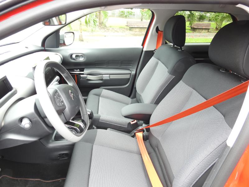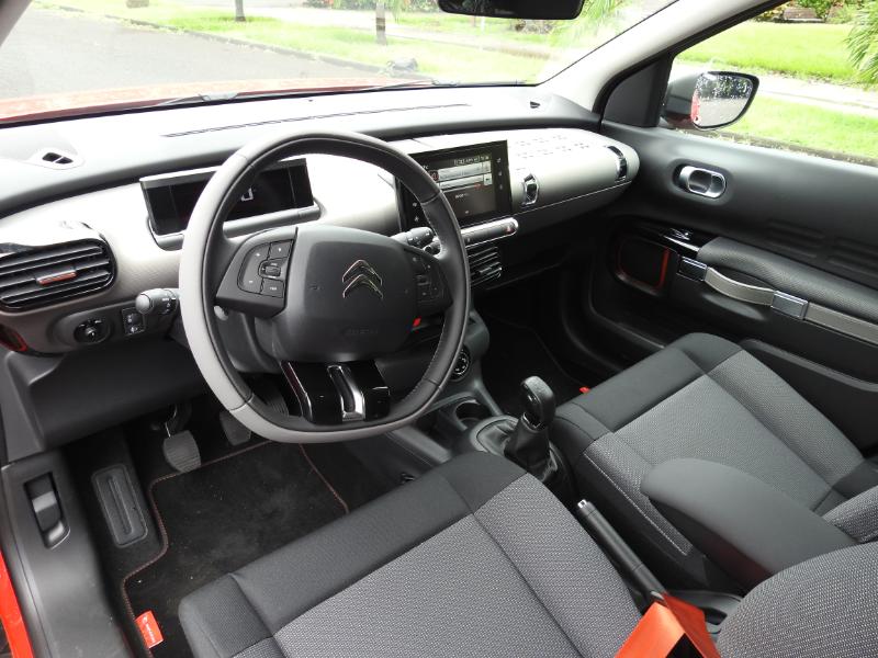 Mais la principale nouveauté de cette C4 Cactus Rip Curl, c'est l'arrivée d'une molette devant le levier de vitesse, celle du Grip Control. Les réglages de l'antipatinage peuvent ainsi être optimisés en fonction de la surface rencontrée : asphalte, neige, boue, sable... Basée sur le troisième niveau de finition Shine, cette C4 Cactus Rip Curl présente donc, pour la Martinique et nos conditions parfois très humides, un niveau de sécurité bien supérieur grâce au Grip Control...