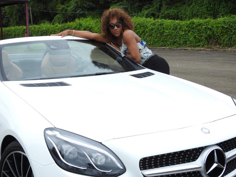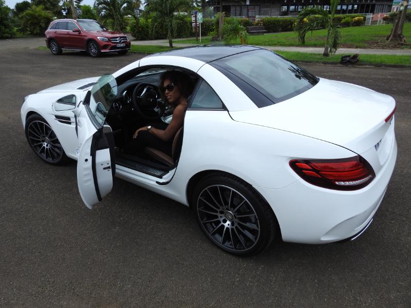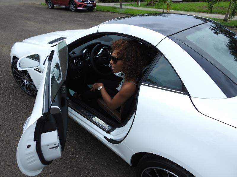 « Laisse moi te dire... » Quand Wenceslas Jesbac responsable commercial de Mercedes Martinique nous propose l'essai du nouveau SLC nous avons immédiatement pensé le réaliser avec une jeune femme !!! Oui quoi de plus évident que de jouer les apprentis sorciers et tenter d'unir deux égéries même pour quelques heures... Mais quelle femme serait aussi adorable, aussi follement belle, assurément aussi Chic et divinement aussi faite pour la SLC 200 Roaster Sportline ???
