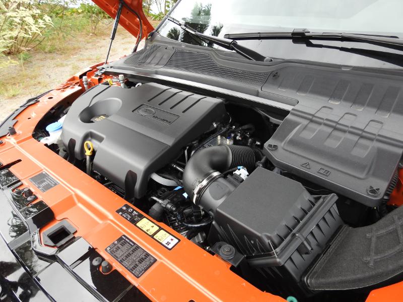 Le nouveau bloc diesel baptisé "Ingenium", dernier fleuron en date du groupe Jaguar Land Rover, présenté d'abord dans la Jaguar XE (Notre essai en Martinique) puis dans la XF en 163 et 180 ch, apparaît pour la première fois sous un capot Land Rover, et en position transversale. L'Evoque en hérite quelques semaines avant le Discovery Sport avec une puissance inédite de 150 ch, complétée d'une version 180 ch. Les chiffres parlent d'eux même: la version de 150 ch à deux roues motrices et boîte manuelle dispose d'un couple de 380 Nm, se contente de 4,2 L/100km et ne rejette que 109 g/km de C02. La version à quatre roues motrices et boîte manuelle de 180 ch annonce respectivement 430 Nm, 4,8 L/100km et 125 g/km.
