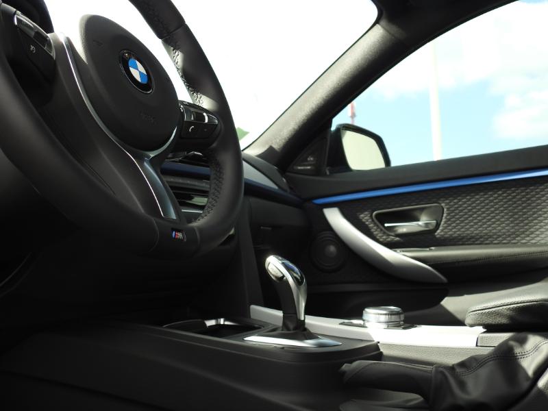 Très classique dans son exécution, l’intérieur ne dépaysera pas les habitués de la marque. Faisant fi d’un écran tactile, la Série 4 s’en remet donc à des boutons « physiques », et à la traditionnelle molette du système iDrive, ce qui n’est pas forcément pour me déplaire. Quoiqu’il en soit, l’ergonomie ne prête pas le flanc à la critique, puisque les commandes tombent naturellement sous la main. La position de conduite, au ras du sol, est parfaite, tandis que les sièges offrent un maintien irréprochable.