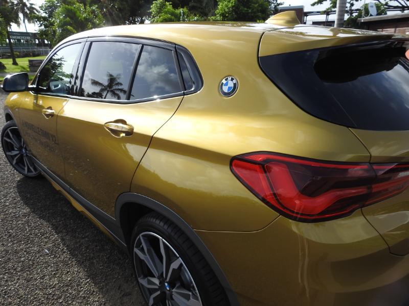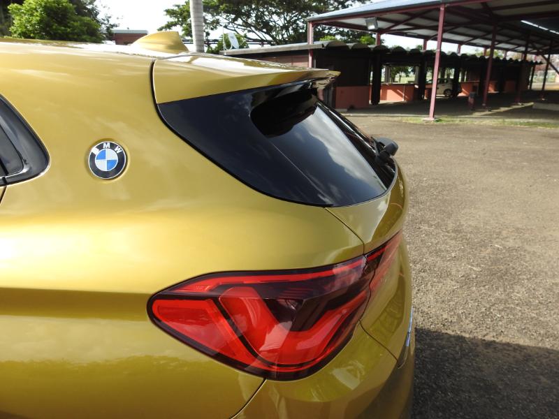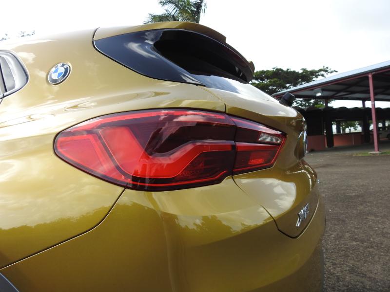 Sur la même base que le modèle X1 cette BMW X2 a envie de séduire les jeunes et sans doute les femmes de notre île ! Le design novateur et affirmé de ce modèle laisse transparaître une envie de rajeunir sa clientèle. Dès le premier coup d’œil, le véhicule est flatteur, les proportions sont belles et le coup de crayon est réussi.