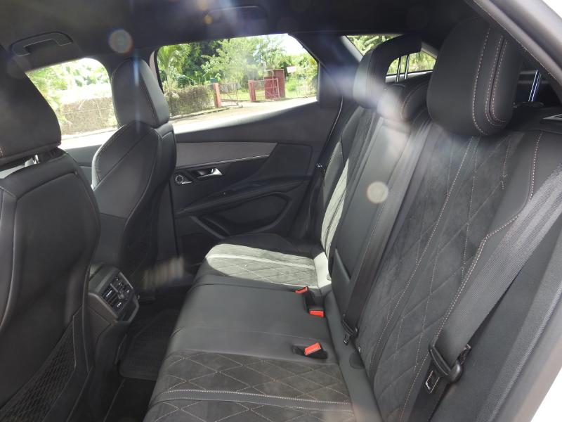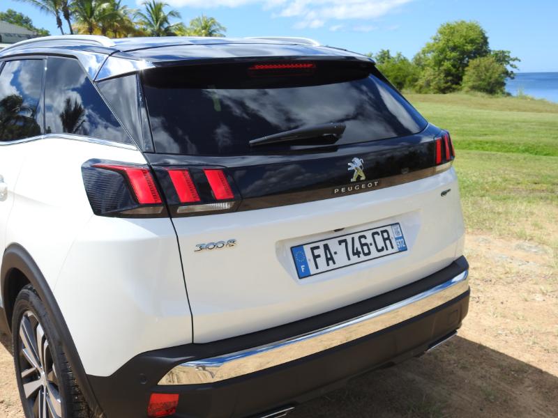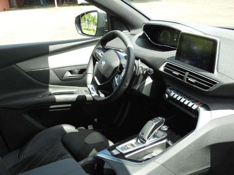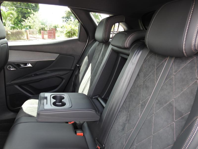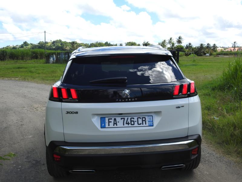 La vie à bord du 3008 est agréable. Le design est toujours dans le coup, la construction est sérieuse, les ajustements sont précis. Mention spéciale pour le petit volant à méplats qui participe grandement au plaisir de conduite. Le combiné d’instrumentation digital i-Cockpit est bien pensé et permet d’afficher de nombreuses informations comme la navigation, des cadrans, des informations sur le véhicule, sur la source audio en cours de lecture… A vous de choisir le mode d’affichage qui vous plait le plus en complément de l’écran façon tablette qui trône sur le tableau de bord. L’écran central est tactile, mais Peugeot a eu la très bonne idée de conserver des raccourcis physiques sous forme de switchs façon aviation. Ainsi, on ne se perd pas dans les nombreux menus du système d’infodivertissement, une pression sur le raccourci correspondant suffit à trouver la fonction recherchée. Le 3008 peut être assez hautement configuré si vous piochez dans le catalogue d’options : on y trouve en autres des sièges chauffant et massant, un chargeur smartphone par induction, pléthore d’aides à la conduite (assistance freinage d’urgence, Park Assist, régulateur adaptatif jusqu’à arrêt complet du véhicule.... Voir notre liste ci-dessous d'équipements de série...) et un système audio Focal. Bon on vous le dit comme on le pense et l'écrit ; La 3008 est vraiment l'étoile brillante du moment aussi en Martinique...