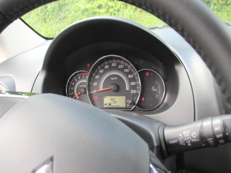 Toutefois notre modèle essayé apporte un autre élément capital : le moteur essence trois cylindres 1.2 MIVEC de 80 chevaux. La puissance ne parait pas plus folichonne que le couple de 10.8 mkg mais les deux doivent être reliés à la masse à vide de seulement 845 kg pour prendre toute leur signification. Le dépouillement de la Space Star trouve lui aussi une explication valable car la légèreté de cette citadine se révèle vite comme son atout majeur sur la route. Le bénéfice sur les consommations est accentué par l’extrême longueur des cinq rapports de la boite manuelle. Le 1.2 est officiellement donné pour 4.1 L/100 km en trajet mixte, un score finalement pas si éloigné de la réalité. En effet, notre essai, qui comprenait un peu de Palmiste et une petite portion d’autoroute, s’est conclu par 5.6 L/100 km sans surveiller particulièrement la consommation. A contrario, en pratiquant une éco-conduite poussée, le trois cylindres est descendu sous les 2.1 L/100 km !
