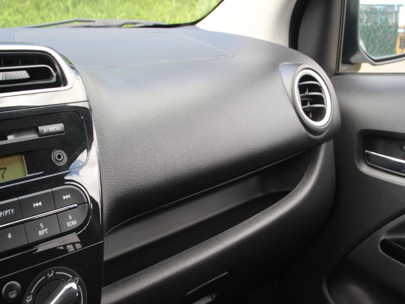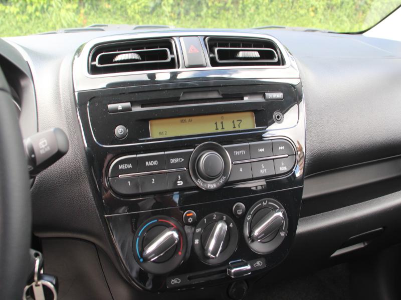 A moins de 16200 € en prix de base, il ne faut évidemment pas attendre une finition premium. Mitsubishi se refuse à qualifier sa Space Star de « low-cost » mais une comparaison avec Dacia vient pourtant vite à l’esprit. L’univers de plastiques durs, de garnitures déformables et de sièges en tissu informes a de quoi faire grincer des dents tant on a l’impression de revenir quinze ans en arrière. Le milieu de gamme Invite, ramène la Space Star dans la catégorie « bon marché » avec un rapport confort/prix correct et un équipement décent : climatisation, radio, appuie-têtes arrière réglables, plage arrière (!), éclairage du coffre, vitre électrique automatique côté conducteur, rétroviseurs électriques, prises USB/AUX, Auto Stop&Go, … On est alors beaucoup plus enclin à accepter les petits défauts de l’habitacle qui, à moins de 16200 €, s’oublient facilement, d’autant que la qualité d’ajustement est plutôt soignée. Ces deux niveaux de finition s’associent à la motorisation essence trois cylindres 1.0 L de 71 chevaux qui affiche 4,0 L/100 km en cycle mixte avec l’Auto Stop&Go (finition Invite).