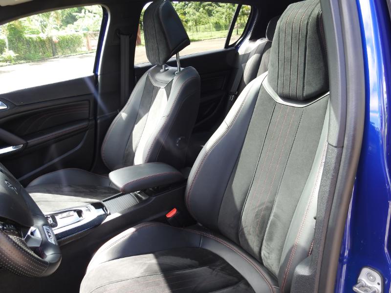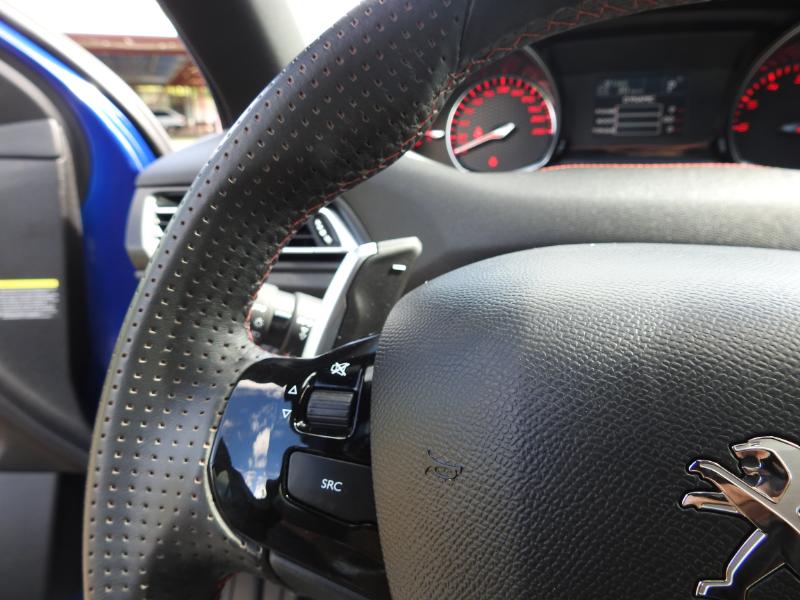 Une fois le mode « Sport » enclenché, via le Driver Sport Pack, j'ais été immédiatement tenté d’utiliser les palettes fixes situées derrière le volant. Rappelons que ce mode durcit la direction en atténuant fortement son assistance, rend la pédale d’accélérateur plus réactive et envoie dans les hauts-parleurs un grondement artificiel sur lequel nous reviendrons. Les palettes fixes ne sont pas gage d’une facilité d’utilisation optimale et manquent de réactivité mais, on trouve un plaisir certain à maîtriser totalement les changements de rapports surtout à la relance en sortie de virage. Le son qui remplit l’habitacle donne des frissons sportifs qui, associé aux compteurs rouges et au 180 cv Blue Hdi vous ajoute aussi des ailes .