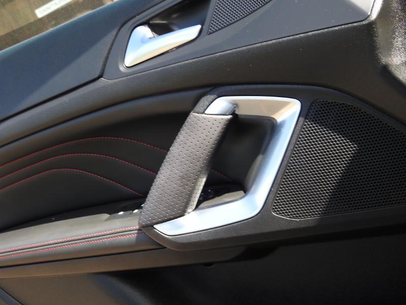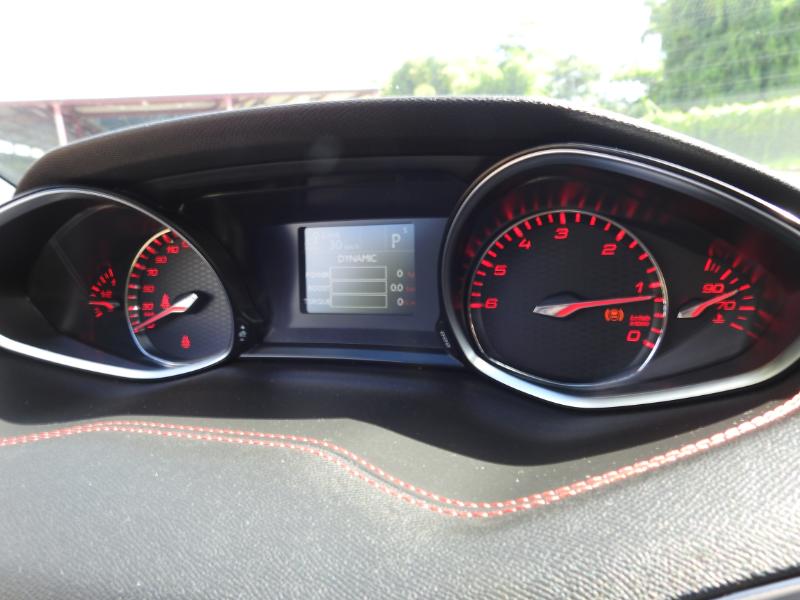 Deux mots sur la ligne sportive mais discrète de notre 308 GT 180 cv avec le même impression sur les contours intérieurs de notre modèles... Miam... Plastics souples, surpiqûre rouges, sobriété globale du tableau de bord rehaussé d'un compteur et d'un compte-tour tout de rouge vêtus... Les flancs de notre modèle d’essai diesel GT profitent de nouvelles jantes en aluminium Saphir Black de 18″ au rendu brut savamment étudié : stries circulaires et traitement bi-ton. Elles accompagnent deux autres nouvelles jantes de 16″ : Zyrcon et Jade.