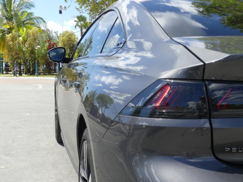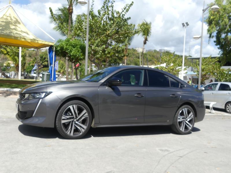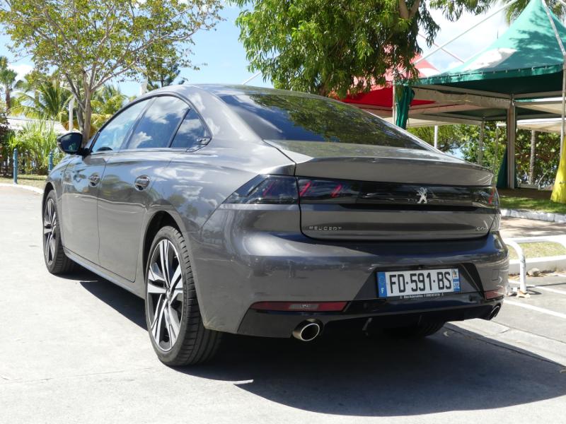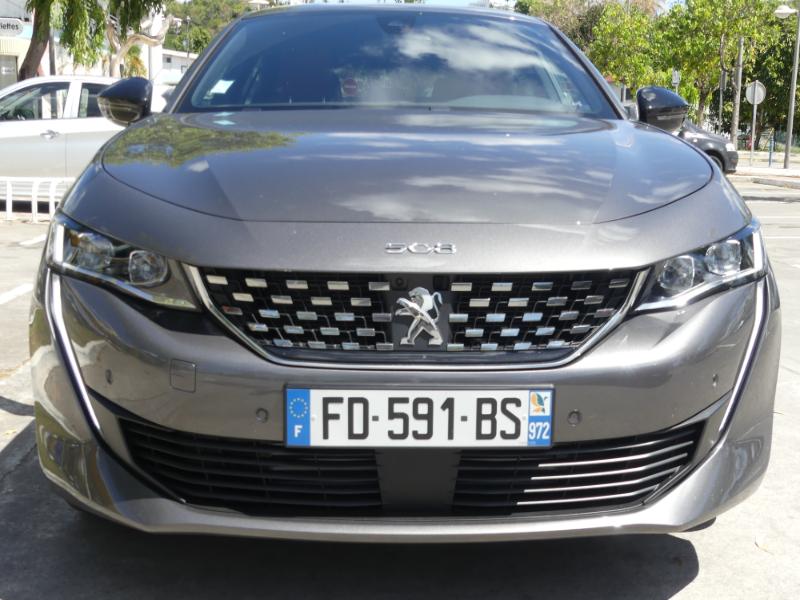 La 508 arbore aussi en face avant les fameuses « dents de Sabre » de longs crocs qui font à la fois office de feux de jour à led et de clignotants, signature visuelle reconnaissable de loin, le tout est dynamisé pour la première fois à ce niveau de gamme chez Peugeot par un hayon à ouverture et fermeture électrique et des feux arrière, intégrés dans un large bandeau noir, déjà vue sur les 3008 et 5008. Sur mon passage et mes nombreux arrêts en Martinique pour cet essai le public est déjà conquit, les gens relèvent le côté sportif et luxueux de notre modèle 508 d'essai en version GT 1,6l Purtech essence de 225 cv EAT8...