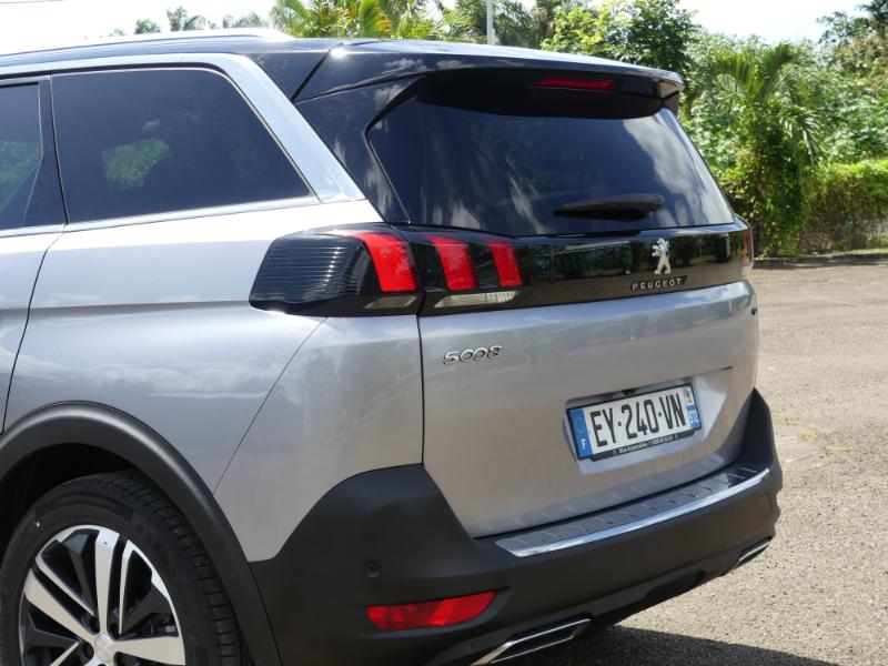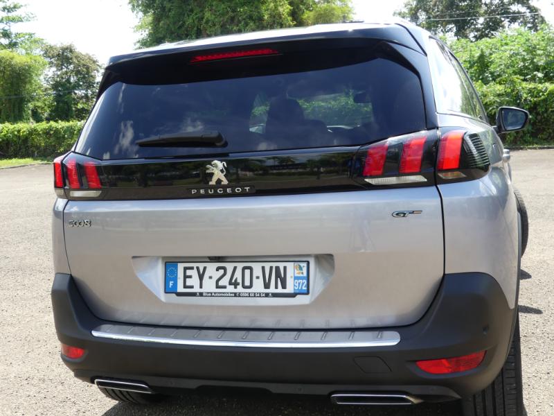 Les jantes bicolores se marient avec les nombreuses touches de chrome qui cerclent les vitres ou soulignent les bas de caisse pour renforcer l’aspect chic de ce SUV de ville. Même le toit sert d’artifice de style en succombant à la mode des voitures bicolores devenues très en vogue. La face arrière propose une quasi reprise à l’échelle de l’arrière d’un 3008 : échappements rectangulaires intégrés au bouclier non peint, phares en reliefs, seuil de porte chromé mais pour notre 5008 une large porte de coffre à ouverture et fermeture automatique... J'aime particulièrement son aspect extérieur il donne rapidement le sentiment d'un véhicule sûr et confortable...