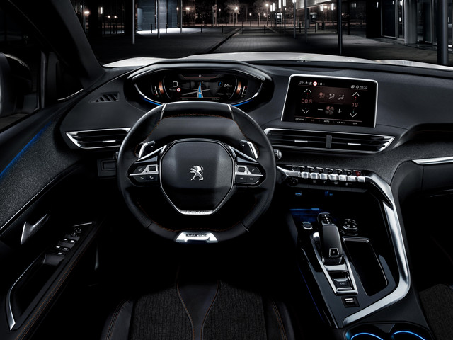 Le style adopté par la marque au lion depuis un certain temps est efficace et séduisant. L’ensemble est élégant, avec de l’alu brossé, des inserts style bois de couleur très claire et du plastique piano noir. Face au passager, la planche de bord s’étire pour donner un maximum d’espace... Côté conducteur, le i-cockpit semble une évidence. Le tout numérique prend ici tout son sens avec le tableau de bord virtuel, l’énorme écran tactile brillant au centre mais un peu trop éloigné du conducteur et les boutons physiques de raccourcis en-dessous. Les touches du piano donnent accès à une page différente sur l’écran... Le CarPlay est de mise biensûr...