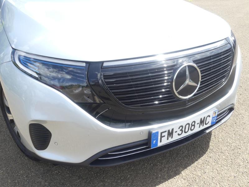 L'EQC inaugure une nouvelle identité stylistique propre à sa gamme électrique, avec une calandre spécifique ornée de l'étoile Mercedes, et encadrée d'un bandeau à LED reliant les blocs optiques, et servant de signature lumineuse. Ce SUV est le premier véhicule 100% électrique d’un vaste programme d’électrification de la gamme Mercedes, cela inclut les systèmes suivants: EQ Boost qui embarque une batterie de 48 Volts, EQ Power qui englobe les hybrides rechargeables et EQ qui désigne les modèles 100% électriques.