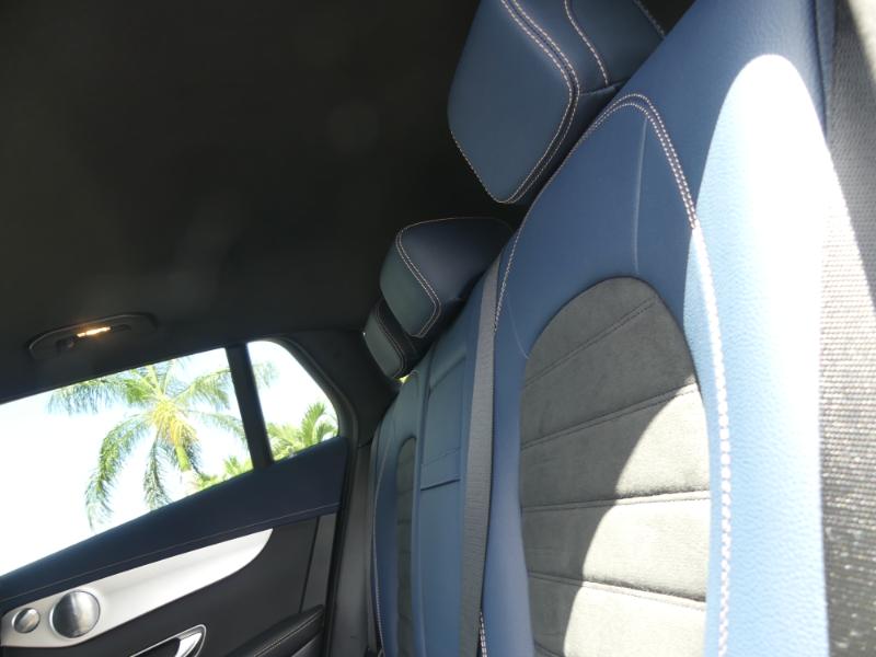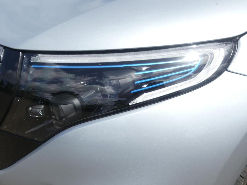 En terme de design extérieur, il partage la même architecture que le GLC dans sa version thermique. Mais aucun risque de confondre les deux SUV. En effet, la face avant de l’EQC est totalement nouvelle. Elle présente une grande surface noire qui contient les phares et la grille du radiateur. La face avant de l’EQC est donc plus bombée. De plus, les feux de jour sont totalement différents. Sur le SUV électrique, une bande lumineuse LED relie les deux phares. L’arrière du véhicule semble former un seul et même bloc, tandis que la ligne de toit a été légèrement abaissée – mélange entre un GLC conventionnel et un GLC coupé. Vous remarquerez la bande de LED rouges entre les phares arrière.