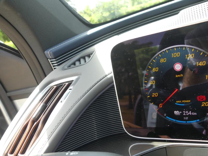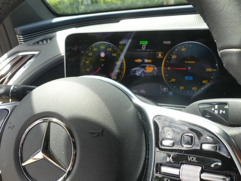 Mobilité donc, plus que conduite. Ingénieusement, Mercedes-Benz a su intégrer tous les services dédiés à l’électromobilité pour les faire communiquer avec les fonctions de la voiture. Cette interaction globale vous permet non seulement de planifier votre trajet, mais plus encore d’optimiser vos déplacements. L’itinéraire est calculé avec les étapes de charge. Le mode tout automatique tient compte de l’aspect de la route et de l’environnement, comme la déclivité, les ralentissements ou les ronds-points, pour maximaliser la récupération d’énergie. Fondamentalement, on se prend au jeu! La conduite devient stratégique, car le conducteur influence grandement la consommation d’énergie, qui se traduit en autant de kilomètres supplémentaires parcourus. Là encore, la pédale d’accélérateur tactile fera votre éducation et influencera positivement votre style vers plus de sobriété.