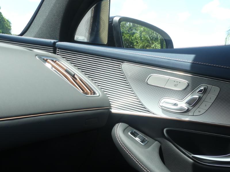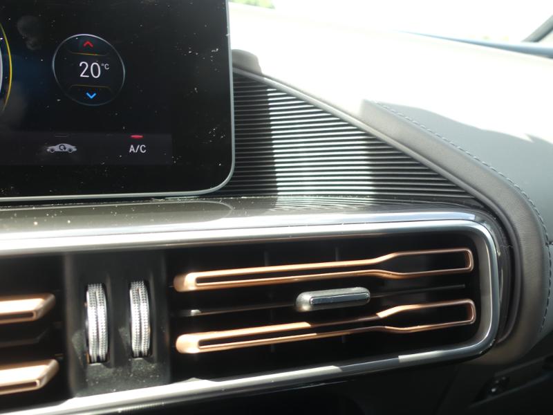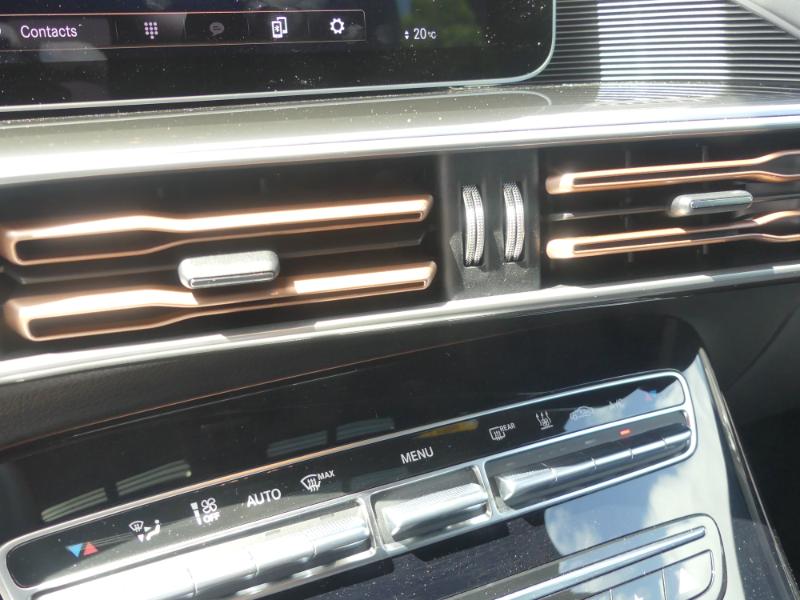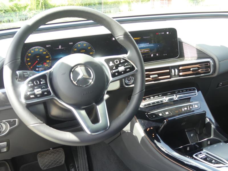 L’intérieur présente également quelques similitudes avec le GLC. Contrairement à certaines voitures électriques récentes, l’intérieur de l’EQC est plutôt sobre. Au centre se trouve le système d’infodivertissement MBUX (dans la série EQC), doté d’un grand écran horizontal et d’une commande vocale intelligente. Vous remarquerez les buses d’aération, qui ne sont pas rondes comme sur les autres modèles récents de Mercedes, mais plates. Même si l’architecture de l’EQC n’est pas spécifiquement électrique, l’espace disponible est relativement plus important que dans le GLC. Pour un empattement identique (2,87 m)… Équipé d’un coffre de 500 litres, le SUV électrique est également idéal pour effectuer des voyages en famille.